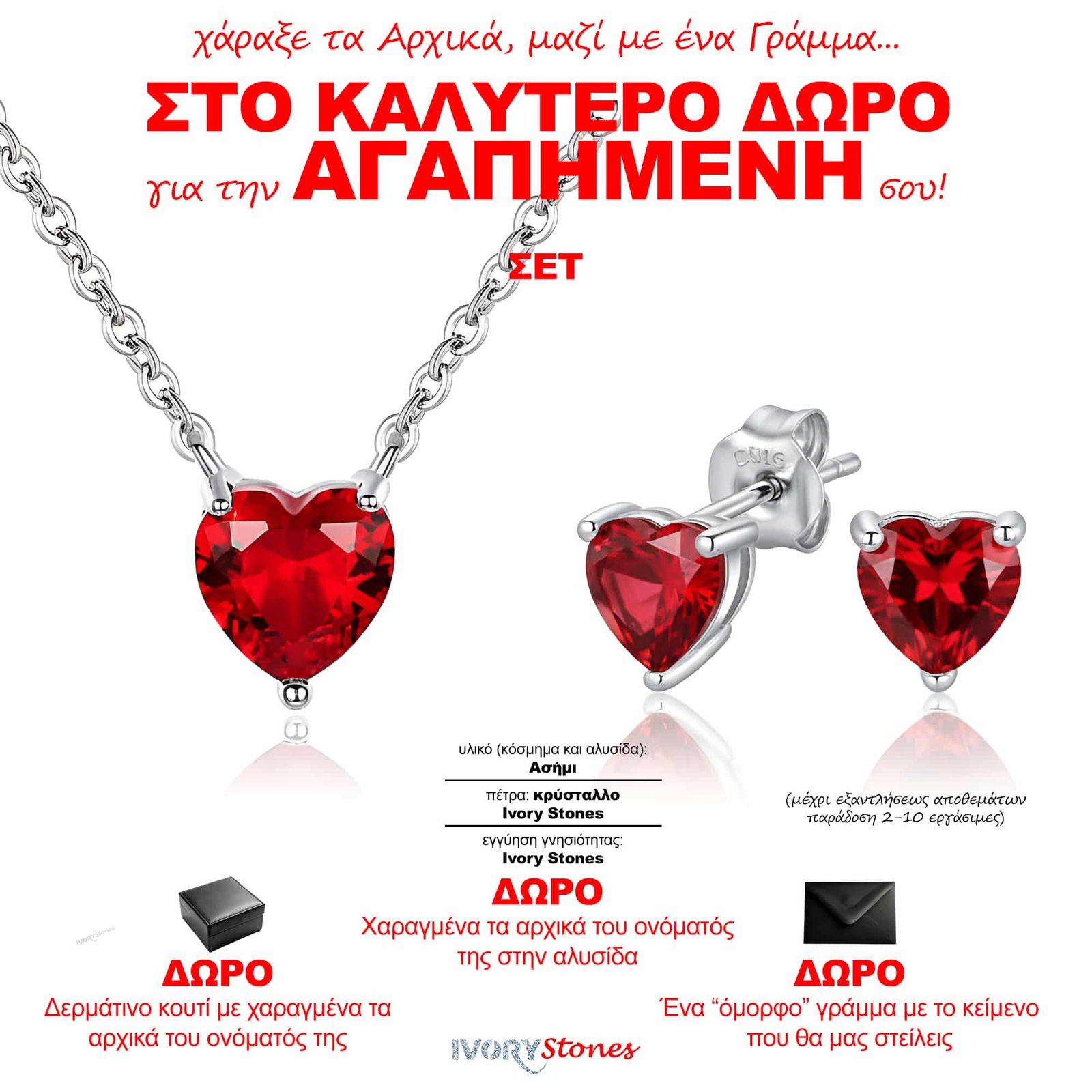 But don’t worry! In our package we provide you with a box to protect your unique pieces of shine, such as this Ivorystones Heart Red Set.