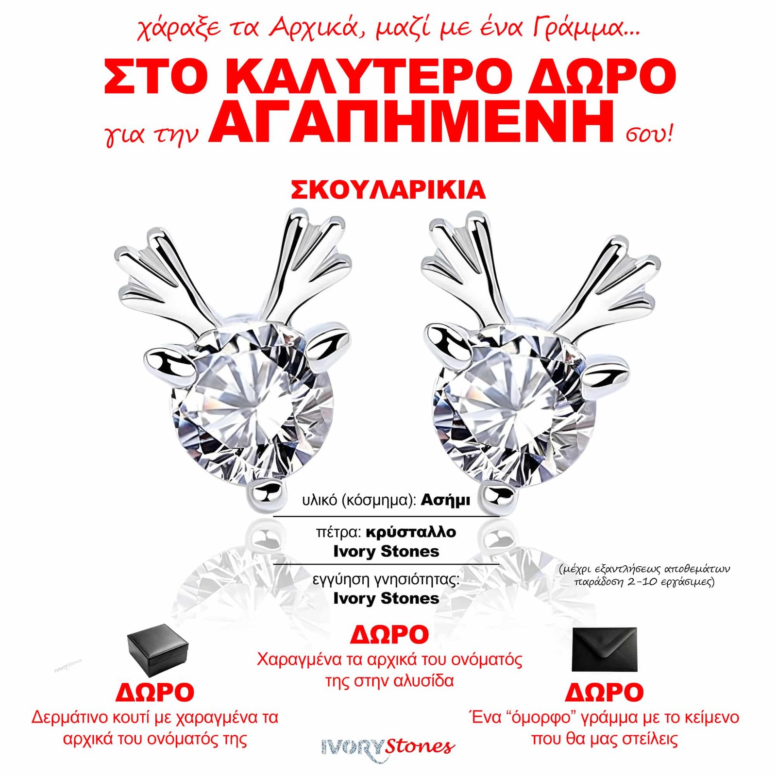 Ivorystones Reindeer Red Earrings should be kept in a dark, cool and dry place.